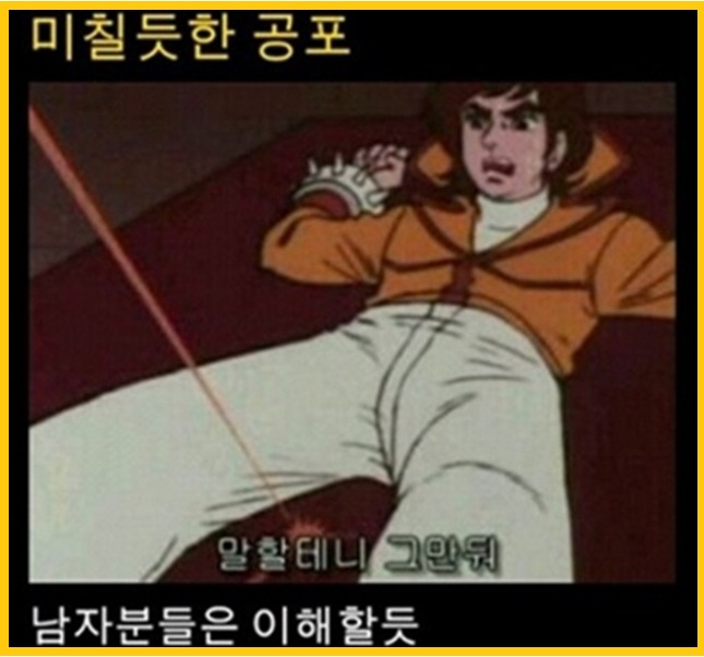 '미칠 듯한 공포' 게시물에 누리꾼들은 "아 저거 미치지", "상황이 급박하네", "만화니깐 무슨일은 없을꺼야~", "남자들은 충분히 이해하지"등의 공감한다는 반응을 보였다. (사진-온라인 커뮤니티)