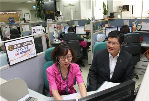 차 대표는 지난 26일 동대문구 신설동에 위치한 대한생명 서울콜센터를 찾아 고객의 소리를 현장에서 직접 듣고 상담을 나누는 등 일일 상담원으로 활약했다.