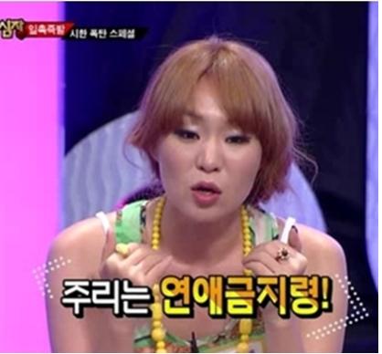 26일 방송된 SBS ‘강심장’에 출연한 정주리는 “소속사에서 연애금지령이 내려졌다”고 전했다.