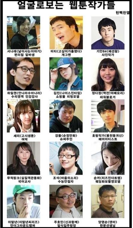 최근 한 온라인 커뮤니티 게시판에는 '얼굴로 보는 웹툰 작가'라는 제목의 사진이 게재됐다.