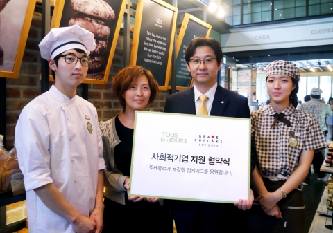 CJ푸드빌(대표 허민회)이 운영하는 베이커리 뚜레쥬르가 29일 사회적기업 ‘용감한컵케이크’와 협약식을 갖고 지원에 나선다.