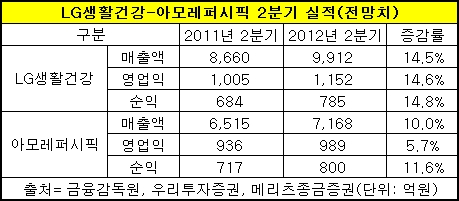 1분기에 매출액과 영업이익, 순이익 모두 사상 최대치를 기록했던 LG생활건강은 분기 매출 기록을 새로 썼고, 아모레퍼시픽은 방문판매에서 부진을 떨쳐 관심을 끌고 있다.