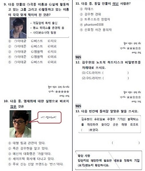 공개된 '유령 시험문제'는 총 13문제로 소지섭의 노트북 비밀번호부터 신효정에게 악플을 남긴 여성들이 본 연극제목, 정문성에 대한 정보를 맞추는 문제 등 다양하게 담겨 있다.