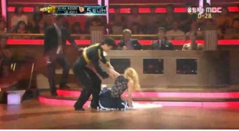 우아한 폿스트롯에서 열정적인 파소도블레소로 바뀐지 얼마 지나지 않아 효연은 큰 실수를 하고 말았다. 폿스트롯을 할 때 벗어놓은 치마를 밟고 미끄러진 것.