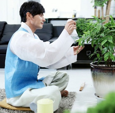 1일 방송된 SBS 주말드라마 '신사의 품격'에서 장동건은 온화한 미소와 여유로운 표정이 어울리는 흰색과 하늘색의 한복을 입었다. 그동안 엉뚱하면서 어리버리하던 모습에서 벗어나 식물 잎사귀를 세심하게 닦는 모습이 전파를 탔다.