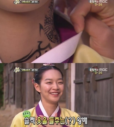 지난 1일 방송된 MBC ‘섹션TV 연예통신’에서는 이 드라마 주연배우 이준기와 신민아가 촬영 중인 현장이 전파를 탔다. 이날 방송에서 신민아는 한복 사이로 목에 새겨진 문신이 포착됐다.