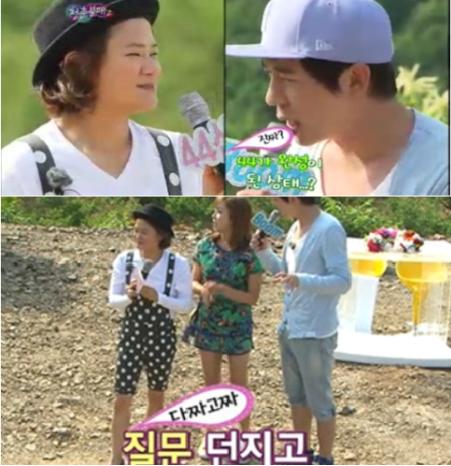 지난달 30일 방송된 KBS2 ‘청춘불패2’에서 김신영은 '44신영'이라고 쓰인 마이크를 들고 등장했다.