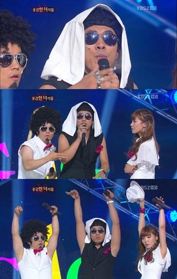 1일 방송된 KBS2TV ‘개그콘서트’의 ‘용감한 녀석들’이 타 방송사의 프로그램 MBC ‘무한도전’을 언급하는 용감함을 보였다.