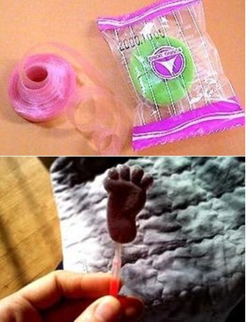 사진에는 종이과자와 발바닥 사탕 등 어린시절 먹던 불량과자의 모습이 눈에 띈다.
