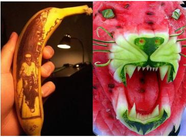 바나나로 그린 그림 등 과일을 이용한 놀라운 작품들에 네티즌들의 시선이 집중됐다.
