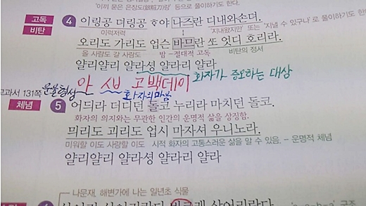 최근 온라인커뮤니티에는 '흔한 고등학생의 국어공부'라는 제목의 게시물이 게재돼 누리꾼들의 눈길을 끌고 있다.