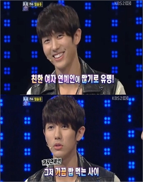 임슬옹은 지난 3일 KBS 2TV ‘1대100’에서 1인 도전자로 출연, 여자 연예인과 관련된 소문에 대해서 밝혔다.