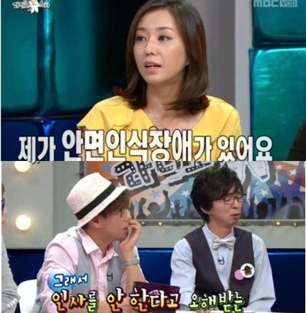 조미령은 이날 “건망증이 심하냐?”는 질문에 "사람 얼굴을 잘 기억못한다"며 안면인식장애를 털어놨다.