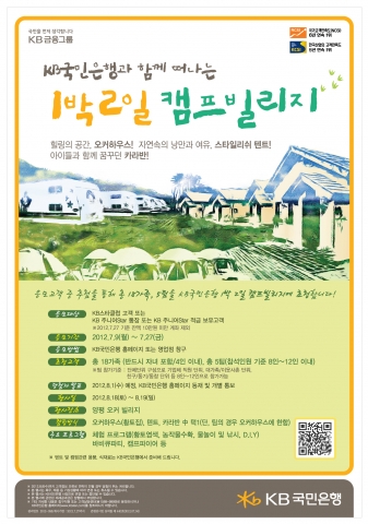 KB국민은행(은행장 민병덕)은 다음달 18~19일 고객초청 캠핑 행사인 'KB국민은행 1박2일 캠프 빌리지'를 경기도 양평군에 위치한 '오커빌리지'에서 한다고 6일 밝혔다.