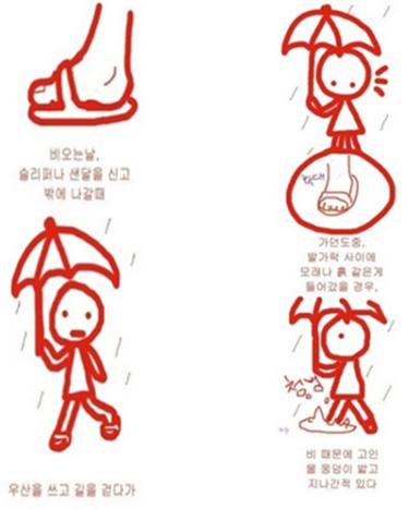 이어 공개된 '비 오는 날 공감’ 2탄은 주인공이 비오는 날 슬리퍼를 신고 가다 발가락 사이에 모래가 들어간다.