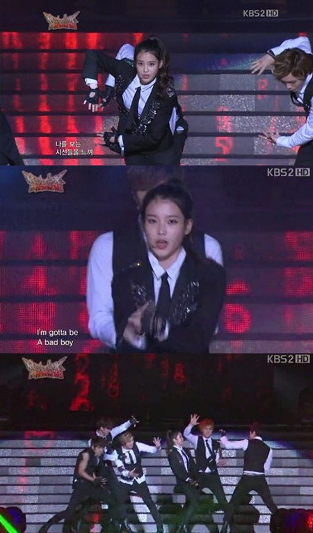 이날 아이유는 엠블랙과 마찬가지로 넥타이를 맨 검은 수트 의상을 입고 무대에 올라 전에 없던 카리스마를 뽐냈으며, 흐트러짐 없는 군무와 라이브 솜씨로 모든 관객들을 깜짝 놀라게 했다.
