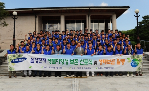 삼성전자는 녹색경영 실천의 일환으로 체계적인 생물다양성 보존 활동을 전개하기 위해 7일 '생물다양성 보존 기본이념 및 행동방침' 선포식을 가졌다고 8일 밝혔다.