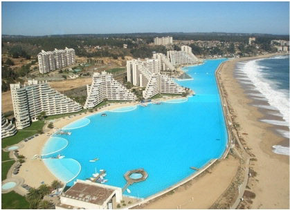 최근 사진 공유사이트 트위스티드시프터에는 칠레 알가로보 '산 알폰소 델 마르 리조트'내에 있는 세계 최대 수영장 사진이 소개됐다. '크리스탈 라군스 테크놀로지'가 건설한 이 수영장은 건설 비용 총 10억 달러를 들여 5년에 걸쳐 만들어진 것으로 알려졌다.