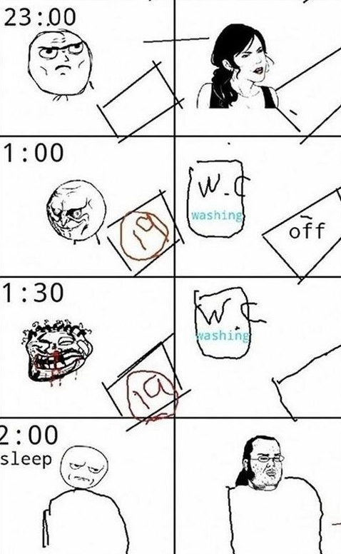 여성은 텔레비전을 어느 정도 시청한 후 욕실로 들어가 잠들 준비를 하는가하면, 남성은 코피까지 흘려가며 19금 프로그램을 시청한다. 급기야는 잠자리에 쉽사리 들지 못해 퀭한 모습을 보이며 웃음을 선사한다.(사진-온라인커뮤니티 게시판)