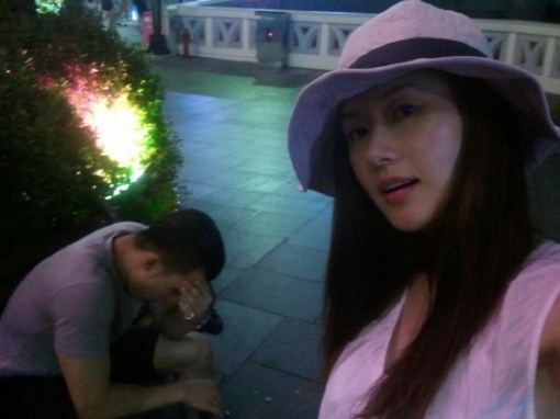 김지수는 9일 자신의 페이스북에 “놀이기구타고 신난 여자, 놀이기구타고 괴로운 남자”라는 글과 함께 데이트 사진 한 장을 올렸다.