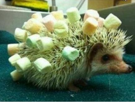사진에는 고슴도치 한 마리가 온 몸에 마시멜로를 꼽은 채 서 있어 눈길을 사로잡았다.