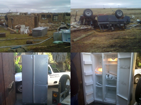 이 지역에 사는 마크 로우씨 역시 이번 토네이도에 집이 반파되는 큰 피해를 입었다. 그는 무너진 담벼락 근처에서 강력한 토네이도 바람에 휩쓸려 내동댕이쳐진 LG 냉장고를 발견했다. 당연히 LG냉장고도 작동하지 않을 것이라고 생각했다.