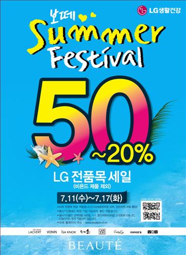LG생활건강은 바캉스 시즌를 맞아 오는 11~17일 멀티 브랜드숍 '보떼'에서 판매되는 모든 LG브랜드 제품을 할인해주는 '보떼 썸머 페스티벌'을 진행한다고 10일 밝혔다.