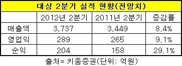 대상의 2분기 실적 상승은 지난해 장류와 자회사 대상 FNF의 김치 사업이 부진했던 것과 달리, 올해 유통 채널 확대로 식품부문 매출이 2천756억원으로 8% 증가한 것이 큰몫을 했다.