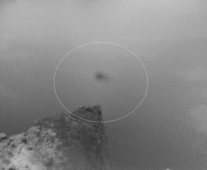 우 씨가 카메라로 촬영한 사진에는 검은 물체가 물고기가 헤엄치는 것처럼 움직이다가 곧 물속으로 사라지는 모습이 담겼다.