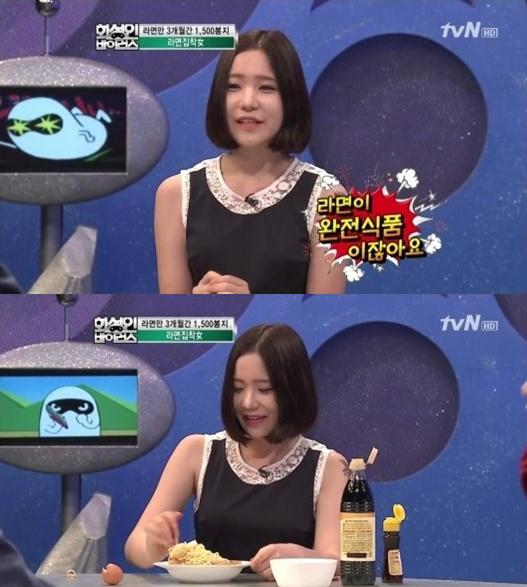 이어서 "다른 음식은 일체 먹지 않고 라면만 먹었더니 다이어트 효과를 봤다"는 믿을 수 없는 주장까지 했다. 여기에다 "3개월 전부터 라면만 먹기 시작했다"고 주장하면서, "나만의 레시피로 몸무게도 5kg 감량했고 피부도 좋아졌다"고 이야기했다.