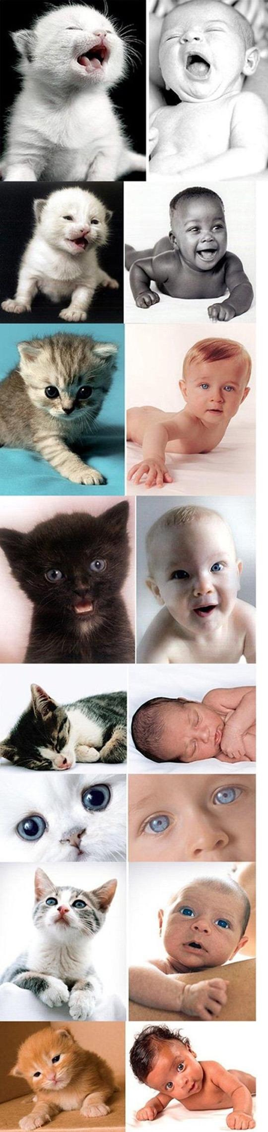 게시물에는 새끼 고양이와 아기가 닮은 꼴 별로 배치돼 있다.