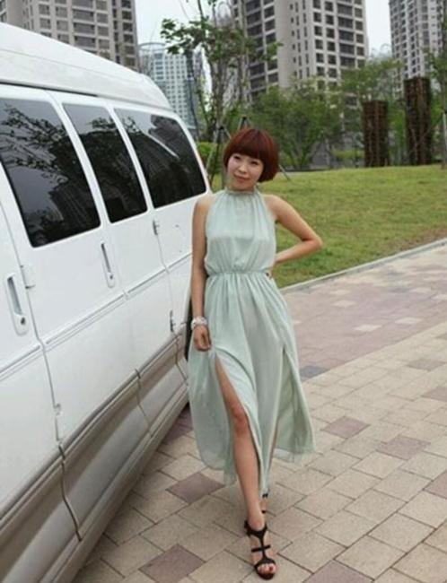 공개된 사진에서 오나미는 하늘거리는 드레스를 입고 늘씬한 다리를 드러내며 포즈를 취하고 있다.