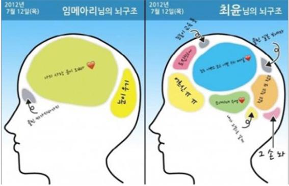 '임메아리 뇌구조'를 보면 극중 최윤(김민종)을 짝사랑하는 메아리답게 뇌구조에서도 '나의 사랑 윤이 오빠'가 대부분을 차지하고 있어 눈길을 끈다.