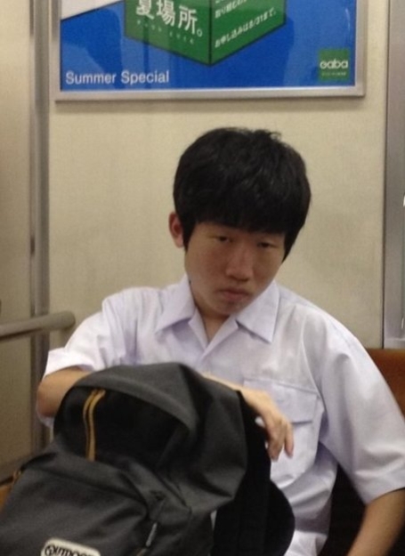 게재된 사진 속에는 교복을 입은 일본 남학생이 지하철 의자에 앉아 있다.