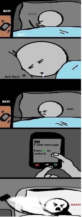 '새벽 문자 공감’그림은 주인공이 새벽 4시에 온 문자를 확인하기 위해 핸드폰을 잠금해제하지만 핸드폰의 환한 불빛에 괴로워하는 모습이다.