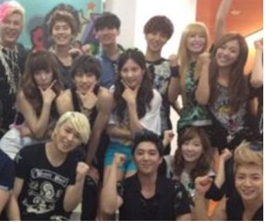 공개된 사진은 MBC ‘쇼! 음악중심’에 모인 동방신기 멤버들이 슈퍼주니어 멤버들이 대기실에서 다정한 포즈를 취하고 있는 모습이 담겨 있다.