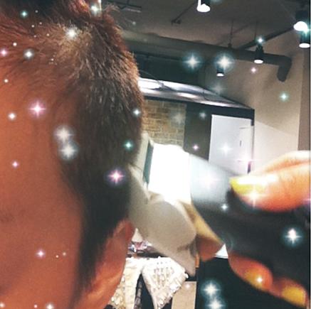 사진에는 산다라박의 얼굴은 보이지 않고 밀려나가고 있는 왼쪽 머리만 가득 찼다. 미용실에서 흔히 볼 수 있는 바리캉을 이용해 시원하게 밀고 있는 모습이 마치 입소 전 군인을 연상시켰다.