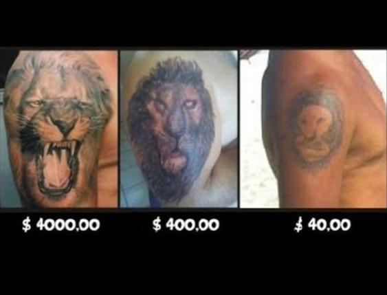 공개된 사진 속에는 40달러부터 4천달러의 가격에 따라 그려진 문신을 비교해 놓았다.
