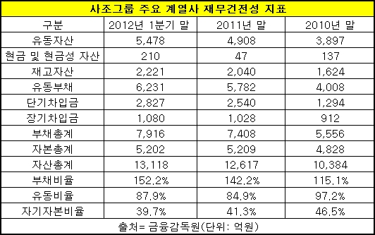 4개 핵심 계열사 유동자산은 1분기 말 5천478억원으로 2010년 말 보다 40.6% 늘었다.