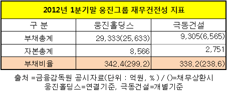 웅진홀딩스의 경우 현재부채 2조9천333억원에서 미상환사채 3700억원을 갚으면 부채총계가 2조5천633억원이 된다. 부채비율이 종전 342%에서 299%으로 낮아지기는 하지만 여전히 위험한 수준이다.