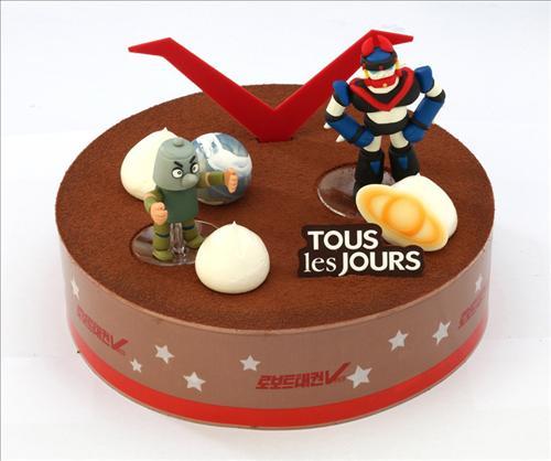신제품은 '로보트 태권V'와 '깡통 로봇 철이' 캐릭터가 장식된 원형 초콜릿 케이크 '무적의 우리친구 태권V'와 애니메이션 속 로보트 태권V의 다양한 모습을 그려 넣은 딱지가 장식된 사각형 초콜릿 케이크 '돌아온 로보트 태권V' 등 2종으로 구성됐다.