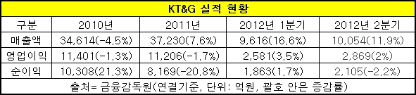 KT&G 단독 실적만 따졌을 때는 상승세가 더욱 두드러진다.