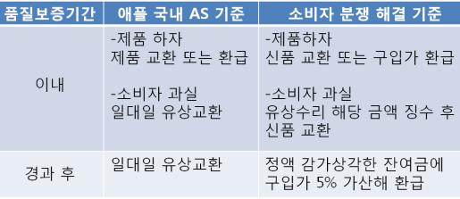 애플이 국내 소비자분쟁해결기준에 따른 AS정책으로 변경했다지만 하나하나 따져보면 결국 소비자분쟁해결기준을 벗어나는 예외조항이 너무 많은 것이다.