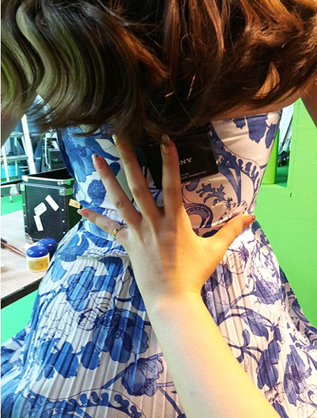 공개된 사진 속에는 원자현의 허리부분에 다른 사람이 손바닥을 갖다 대 치수를 재는 듯한 제스처를 취하고 있다.