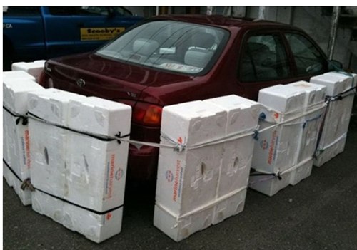 특히 차를 중심으로 둘러싸진 스티로폼은 긁힐 염려 없는 주차법이지만 다소 너저분해 보여 보는 이로 하여 웃음이 나게 만든다.