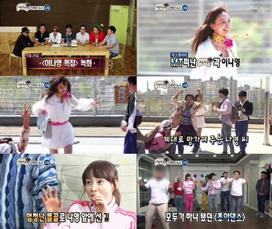 21일 오후 MBC 예능 프로그램 ‘무한도전’은 지난 1월 이후 현재까지 멤버별 소식을 간추려 전하는 ‘무한뉴스’를 진행했다. 특히 지난 4월 촬영한 이나영과의 특집 촬영 일부를 공개해 눈길을 끌었다.