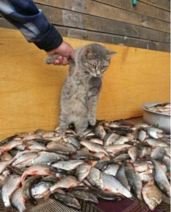 최근 인터넷에 올라온 ‘영혼이 빠져나간 고양이’ 사진은 고양이 한 마리가 많은 생선들 사이에서 넋을 놓고 있는 모습이 담겨 있다.