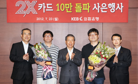2X카드 10만번째 발급고객인 이재욱(34세) 씨는 "친한 지인들로부터 2X카드의 다양한 혜택에 대한 입소문을 들어 신청하게 됐는데 큰 행운을 얻게 되었다"며 "앞으로 외환 2X 카드의 평생 카드 컨셉에 맞게 오랫동안 함께 하겠다"고 말했다.
