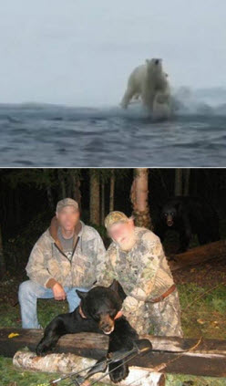 얼마전에는 사냥꾼들에게 잡힌 새끼곰을 구하려는 어미곰의 모습이 공개돼 화제가 되기도 했다. 특히 사냥꾼들의 등 뒤에 서있는 어미곰의 눈빛이 심상치 않아 다양한 해석을 낳았다.