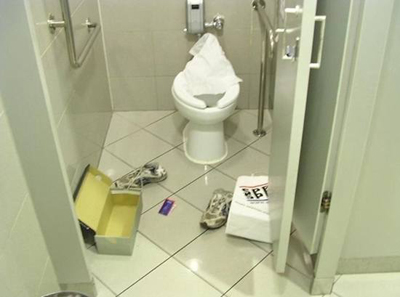 공개된 '신발 산 자의 기쁨' 사진 속에는 화장실에 헌 신발과 새로 산 신발 박스가 어지럽게 널브러져 있는 모습이 담겨 있다. 신발 박스와 신던 헌 신발은 버리고 새 신발만 갈아 신고 갔다는 추측이 가능해 보는 이의 웃음을 자아낸다.